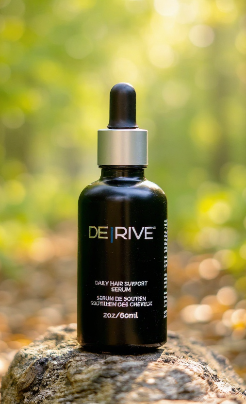 DE|RIVE is non-surgical and hormone-free, making it a gentle solution for both men and women. Because it relies on botanical ingredients rather than harsh chemicals or drugs, it is generally well-tolerated. The goal is to reactivate dormant follicles and support natural hair regrowth, leading to thicker, healthier hair over time.